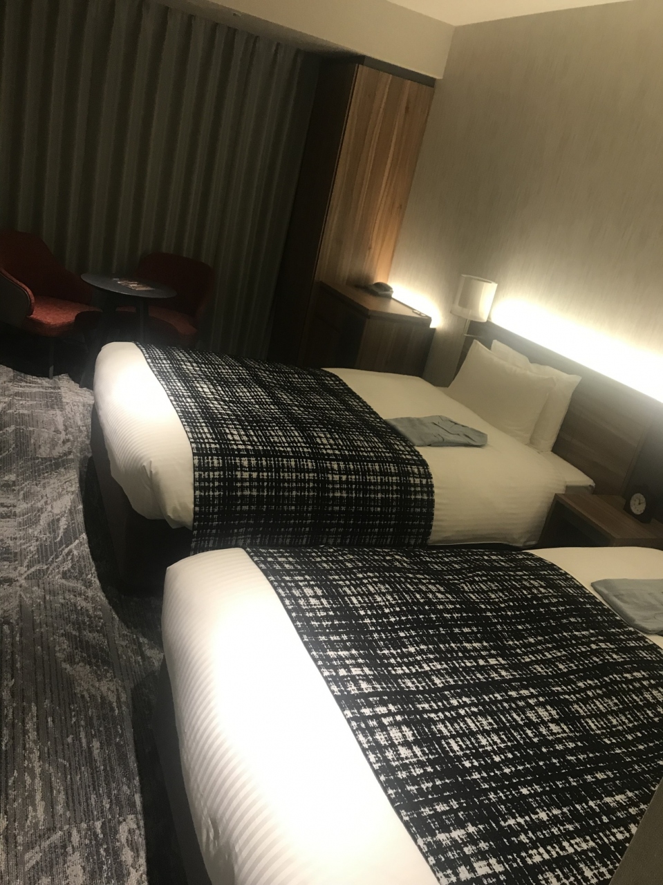 東京の狭いホテルに泊まったせいか、部屋がとても広く感じます。この広さがなんとなく淋しく感じますが。