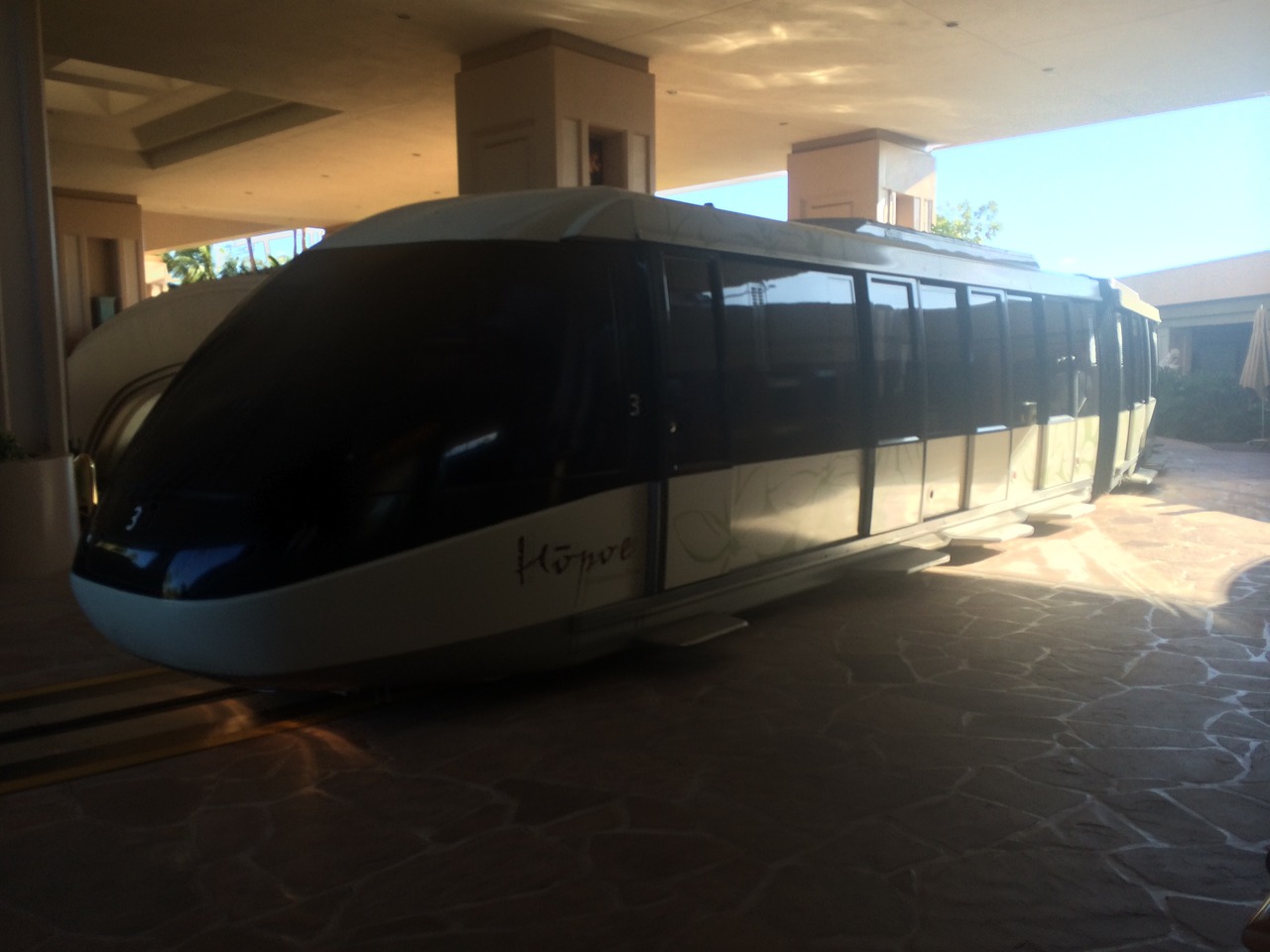 ワイコロアビレッジ内の電車。ステップがあるから車椅子は無理かな?と思いましたが、スロープが出てきて乗れました。