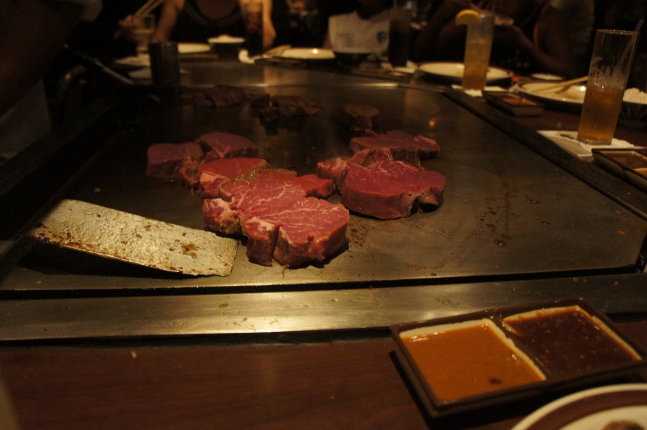 日本で鉄板焼きは何度も食べているのでハワイの鉄板焼きはお肉もアメリカ産だろうしどうなの?と思い、今まで行ったことがありませんでした。しかし知人がハワイの鉄板焼きは面白いから行ってみたほうがいいと言うので予約していきました。