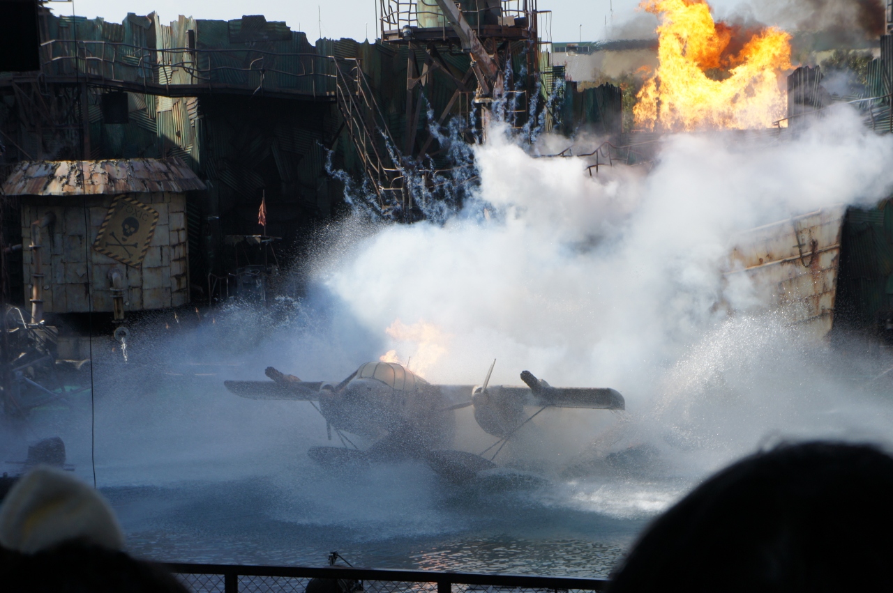 一番良かったと思うのはウォーターワールド。開始時間の30分くらい前に行ったら、係りの方が次回の入場は終了しましたと言っています。横は凄い行列。その中をパスを見せるとどうぞ~と先に進ませてくれて、最初に入れてくれます。待っていた方達、ごめんなさい。