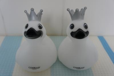 お風呂にいる(ある)あひるちゃんと夕方ターンダウンの後ベットにいるコンラッドベアが楽しみです。(コンラッドベアは毎回色と模様がちがいます)