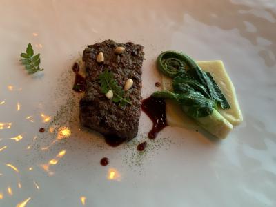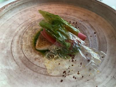 シャングリラホテル東京の中にあるピャチェーレへ。イタリアンのお店です。緊急事態宣言中の為、アルコールの提供はなくラストオーダーも早い為、入店時間もディナーのオープンと同時位にしました。お料理はイタリアン?フレンチ?という感じですが、素材にこだわっていて美味しかったです。