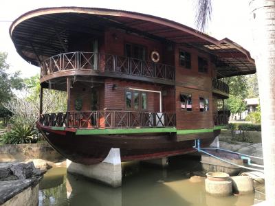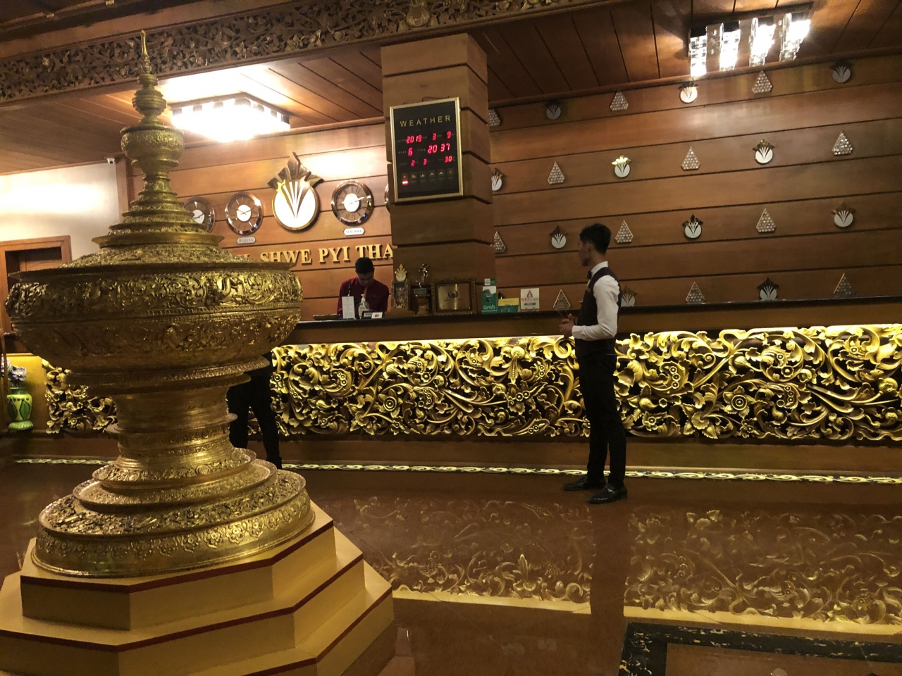 ヘホ空港から20KM程,インレー湖畔にあるホテルです。圧迫感がありましたが,室内は広々としており,快適に過ごせました。ベッド,バルコニー間にバスがあるのですが,使えません。飾りかな,,,最もそこで入浴すればベッド周りが濡れて大変な事になりますが,,,インレー湖へは,ホテル用の水路を通って出られますので便利です。