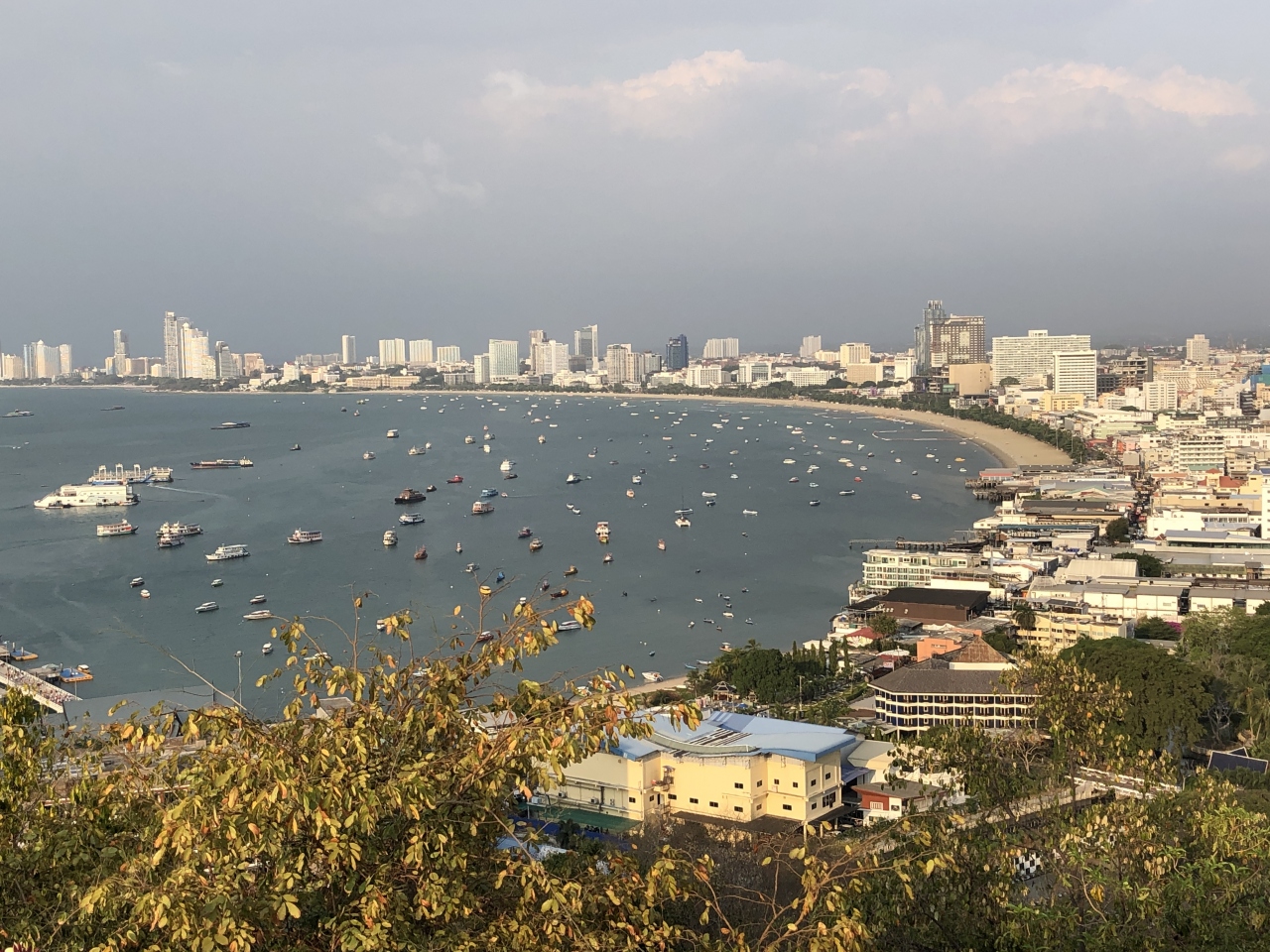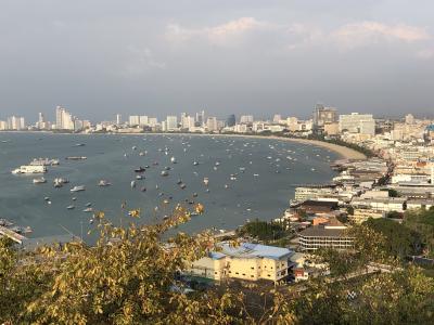 プーペンでの夕食の前に,パタヤ初の同行者を連れて訪ねてみました。3回目の訪問ですが駐車場は,相変わらず混んでました。行かれる場合は,車かバイクがいいですね。バイクも道路にたくさん駐輪してあります。タイの方にとっては,タイ海軍の英雄に対する「信仰の場所」であるのですが,パタヤヒルとしてパタヤ一望の眺めの良いランドマークといても有名になりました。手前に眺めの良いオープンエアーのカフェがありますが,リニューアルしてありました。以前は,「海の家 山の家」風だったのですが,ペンキを塗り替えてあったり,鉄骨の補強がしてあったりしてました。俯瞰パタヤもいいものです。