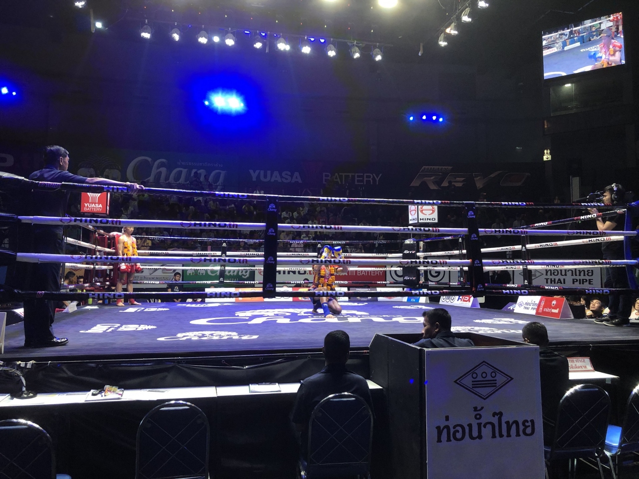 モーチット駅付近からもそんなもんだと思います。チケットは事前に,公式ネットで購入すると200TBHの割引と,SHOPの割引券を会場でくれます。外国人料金でリングサイドのみです。間近で迫力のあるムエタイが見られます。フォトコーナーがバックサイドに有り,1試合終わる毎にそこへ行くと選手との写真が撮れます。売店で豚串20TBHとカオニアオ10TBHを買って食べながら観戦。ビール40TBHも売りに来るので飲みながらの観戦も楽しかったです。帰りは,中心部までタクシーが良いでしょう。交渉ですが,400TBHと言えば