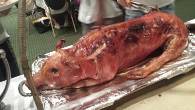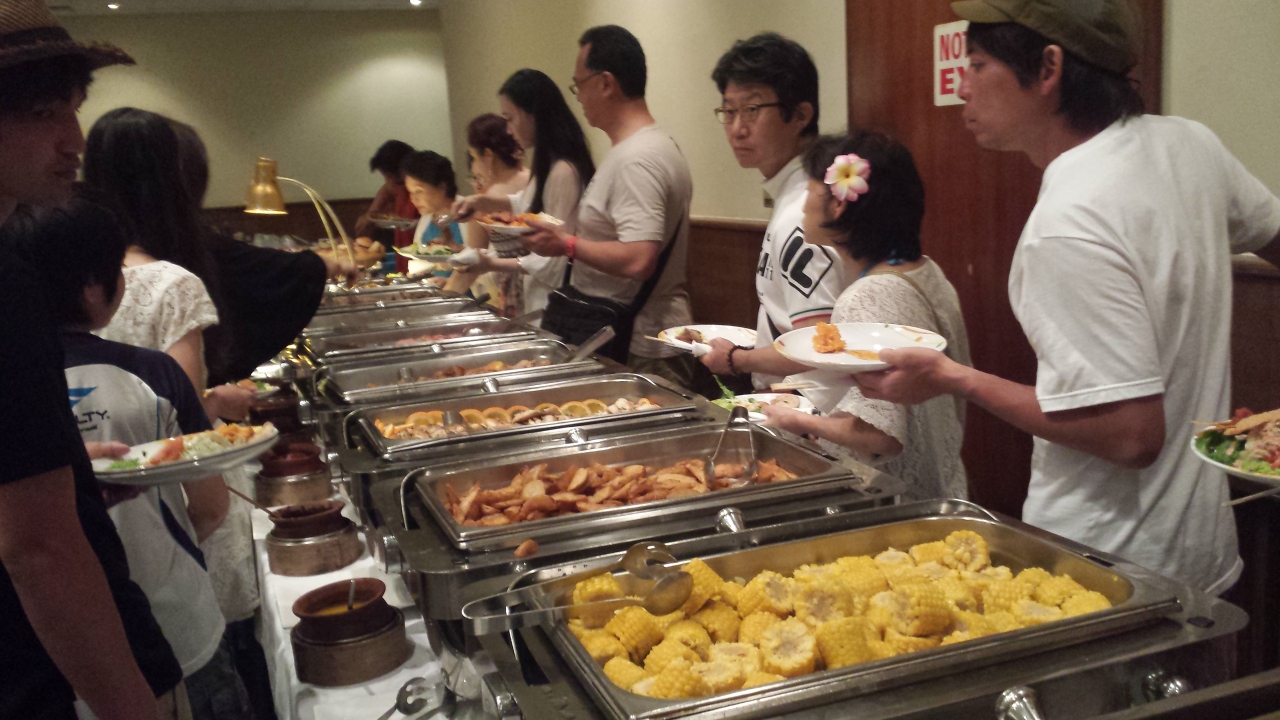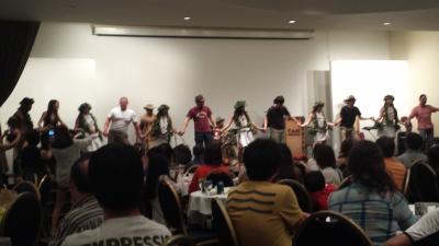 普段はオープンエリアで食事やショーを楽しめるのですが、この日は生憎の雨予報で室内ホールでの開催となりました。タヒチアンやポリネシアン、フラダンスなど披露してくれて、ファイヤーダンスは外で見せてくれました。他に観客に合わせて各国の歌があり、観客を舞台にあげて楽しい余興があったり盛り上がります。食事はブュッフェスタイルなので早めに行った方がストレス無く楽しめます。