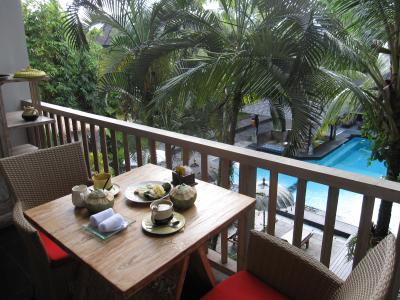 オープンエアのビラはとても広く素晴らしかった。共有のプールはジャングルと一体化する最高のロケーション。毎日のアフタヌーンティーも美味しく、早朝ヨガも楽しめました。ただ、早朝(5時ころから)隣民家からニワトリの「コケコッコー」の嵐が。バリ島民は闘鶏用にどこの自宅でも沢山飼っているそう。私たちの部屋が民家の隣だったからかと思いますが、一言でもその事情を事前に教えてくれればと思いました。朝びっくりしました。(闘鶏については帰りのタクシーで聞きました。)完全なオープンエアなので、乾季に行くことをお勧めします。