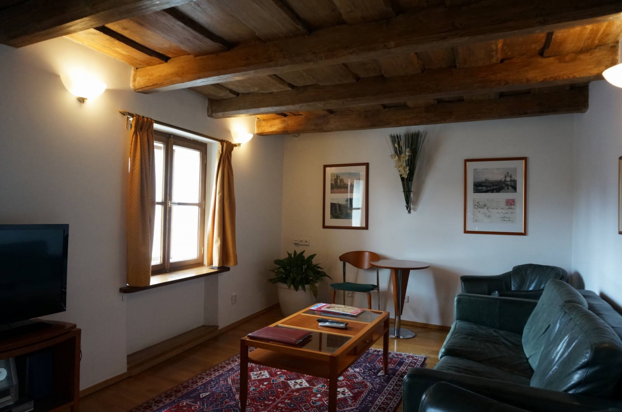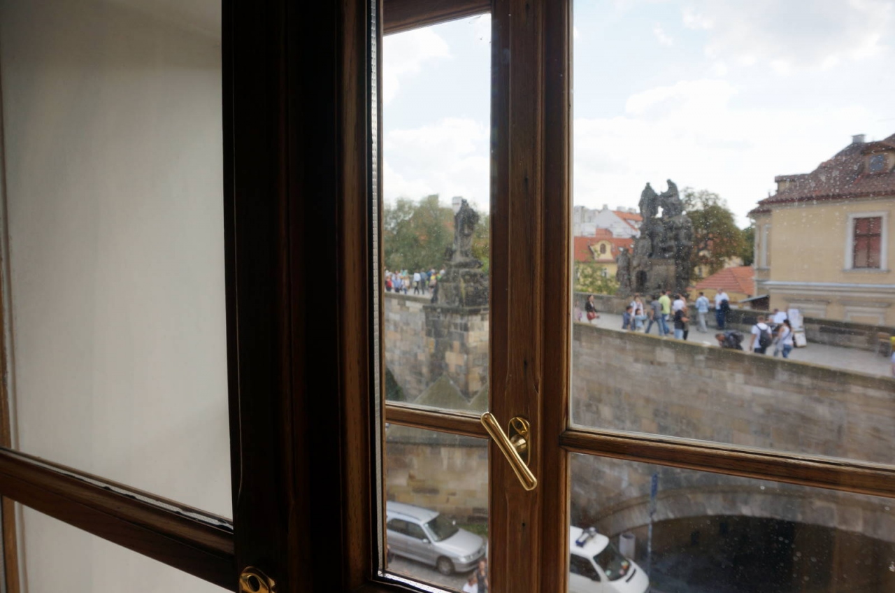 カレル橋のマラーストラナ側の橋塔のたもとに位置し、部屋からカレル橋を行きかう人が眺められます。