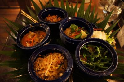 場所はBTSスラサック駅のすぐ前で瀟洒な外観の建物なのですぐわかります。インテリアもセンスよくゆったりとした時間を感じさせる雰囲気です。客は欧米人も多く、日本人を含めてほとんど外国人なので味付けは少しマイルドな感じにアレンジされており、とても食べやすく感じました。値段はバンコクの物価からすればかなり高価な値段になりますが2人で1万円ちょっとでしたので内容からすれば十分満足できる価格でした。- 旅行時期