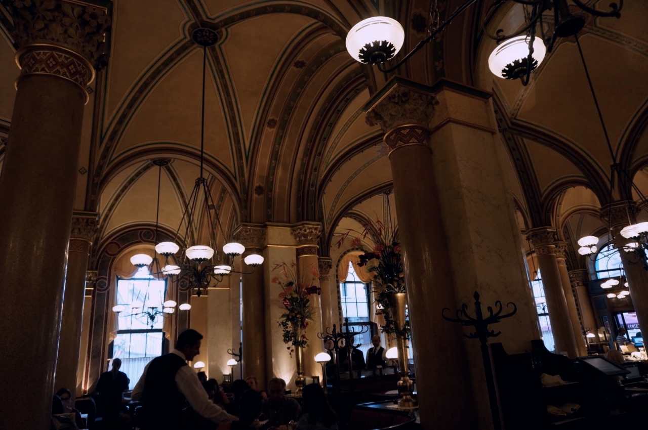 ウィーンを代表する老舗カフェのひとつ。リンク内で泊まったホテルからも近かったので夕食に利用しました。1876年にフェルステル宮殿内にオープンした歴史あるカフェで高いアーチ天井と石の柱が歴史を感じさせます。多くの文化人が通った他、スターリンやトロツキー、ヒトラーまで訪れたそうで、激動のヨーロッパ現代史を思うとすごい場所なんだと感じます。