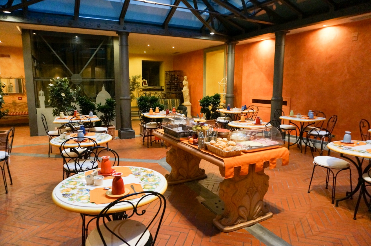 フィレンツェSMN駅から徒歩5分かからない場所でドオウーモやシニョーリア広場に行くのも便利です。特に今回はベネチアから鉄道で入り、寝台列車でミュンヘンへ移動するため、この駅までの近さがとても良かった点です。部屋もファミリータイプの4人部屋はスプリットレベル(メゾネット)になっていて上階と下の階にベッドが分かれ広く使えました。通常のツインルームではシャワーのみのようですが4人部屋はジェットバスつきの広い浴槽もあったので助かりました。朝食ルームの雰囲気もよく食事も良かったです。