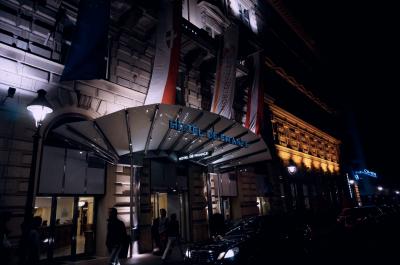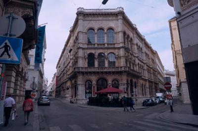地下鉄ショッテントーア駅、トラム1番線の停留所が目の前でどこにいくのも便利です。エントランスのアールヌーボーのキャノピーやアイアンの階段手すりなど歴史を感じさせる内外観が高級感も感じさせます。朝食のメニューも豊富でシャンパンもありました。ウィーンに20ほどある5星ホテルのなかで最も安くツイン朝食付きで140ユーロでした。客室やスタッフのサービスについては4.5星というところでしょうが価格からすれば大変コストパフォーマンスの高いホテルだと思います。