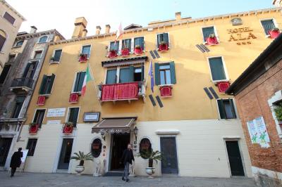 空港からの水上バスが停まるGiglioから50m、サンマルコ広場やアカデミア美術館などにも近い便利な場所にある瀟酒なホテルです。何故か私たちが利用した時にGiglioのヴァポレット乗り場が閉鎖?されていて、一番近いヴァポレット乗り場からは10分近く歩く事になりましたが、ホテルの雰囲気はとてもよく、部屋も広いし、ジェットバスも付いていて快適に過ごせました。朝食も美味しく満足できました。ロビーのベネチアンガラスのシャンデリアが豪華です。