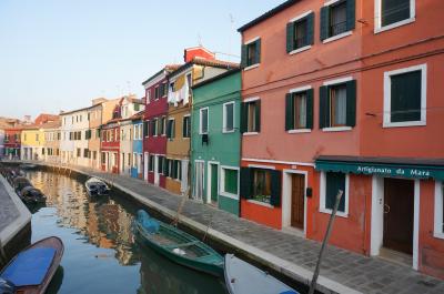 テレビ番組で紹介されていたのを見て、絶対に見てみたいと思ったブラーノ島。実際訪れてみて想像以上の美しいカラフルな家並みの光景に驚かされ、感動しました。島のどこを歩いてもカラフルな家並みが続き、特に小さな運河沿いの景観は素敵です。11月下旬だったのので日曜日でも人は多くなくのんびりと島内を歩いて楽しめました。島内のピザッテリアは安くて美味しくお勧め。