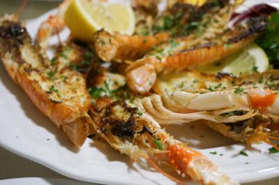 イカ墨のパスタ、ムール貝のパスタ、シーフードの前菜、手長エビのグリルを頼むましたがどれも美味しく、また量もたっぷりでした。特に手長エビのグリルはオリーブオイルとレモンをかけて食べましたが絶品でした。