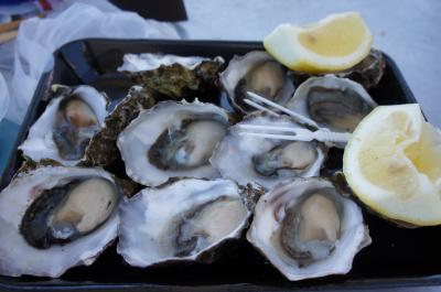 オイスターバーで食べるカキもいいですが,フィッシュマーケットのお手頃ロックオイスターをたらふくいただくのも悪くありません。- 旅行時期