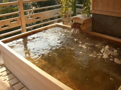 - 貸切半露天風呂があり,幼児と一緒に入れます。