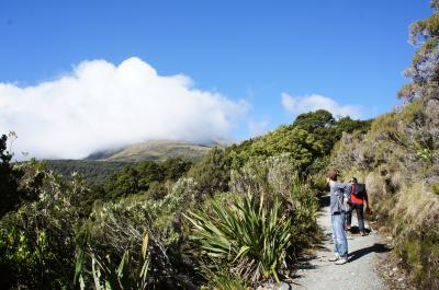 テ・アナウ~ミルフォードサウンドHWYのディバイドの駐車場から歩きはじめる,往復3時間ほどの手軽なトレッキングルートです。