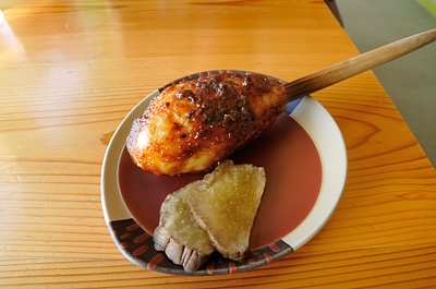 あきたこまちを「半殺し」につき、自家製味噌をぬってある、
