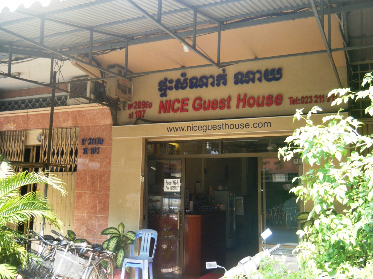 プノンペンで有名なゲストハウスといえば「キャピタルゲストハウス」ですが、そこから数軒南側にある「ナイスゲストハウス」は、おすすめのGHです。ちょうど行ったときはシングルは満室でツインのお部屋でしたが、エアコン、TV、ホットシャワーにトイレ、とにかくお部屋が綺麗でした。1泊13ドルと言われましたが、交渉したら12ドルになりました。よくホットシャワー付きでもお湯の出が悪いGHが多いですが、ここはお湯の出もよかったです。