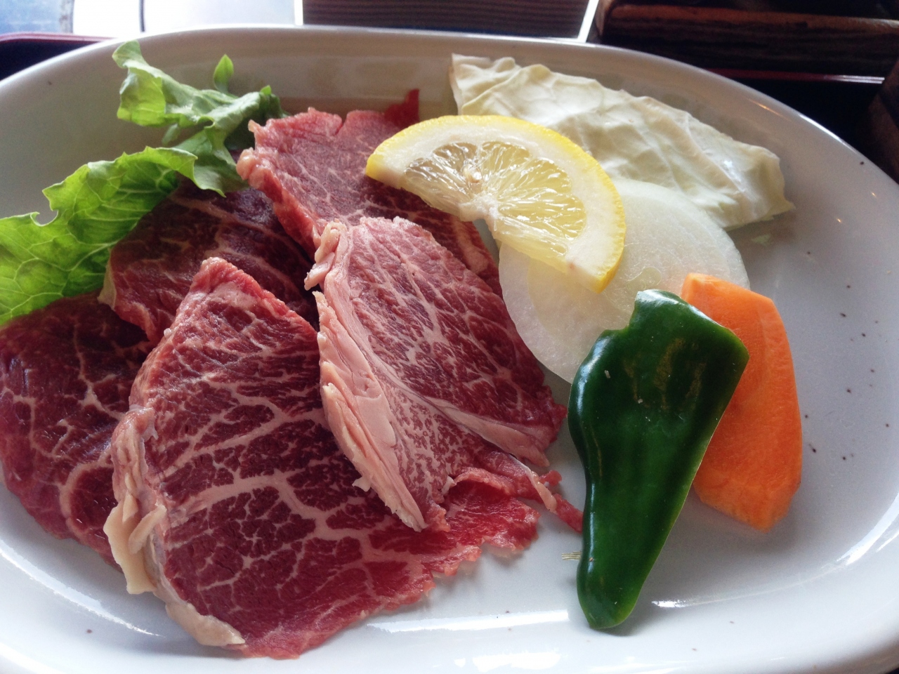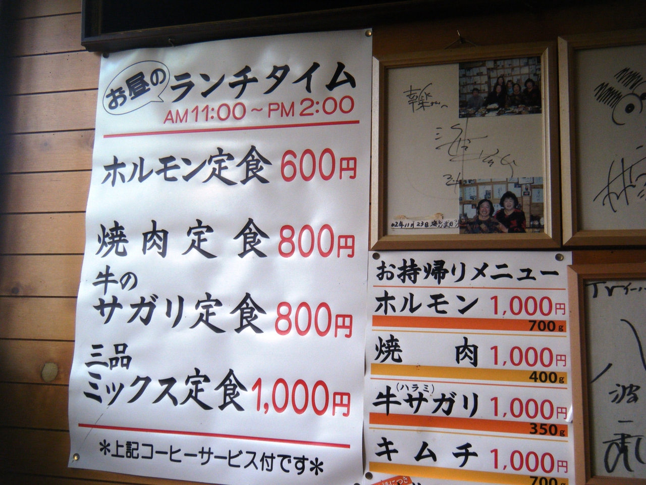 明治時代鉱山で栄えた秋田県小坂町、今でも当時の建物もいくつか残っており、観光で訪れてもとても雰囲気が良くいい町です。その小坂町にいわずと知れたホルモン焼きの「幸楽」という焼き肉屋さんがあります。店内の壁という壁にはここを訪れた有名人のサインや色紙でいっぱいで、どれだけの人気店かが伺うことができます。ちょうどお店を訪れた時はお昼時で、ランチの”ホルモン定食 \600 ”を注文。自分で鉄板で焼いていただくのですが、普通なら焼くと硬くなりがちなホルモンですが、とても柔らかく美味しかったです。わざわざ小坂町までいった甲斐がありました。
