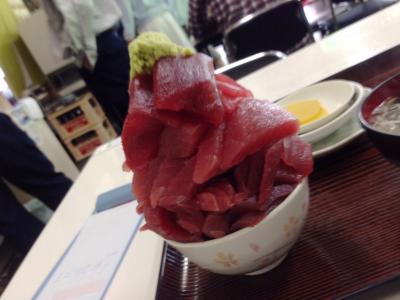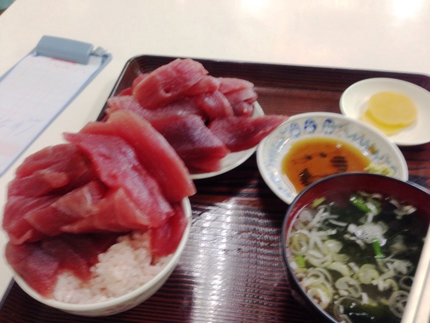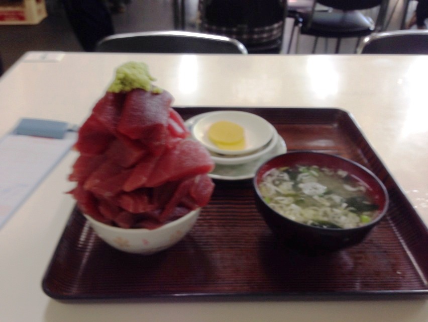 青森県青森市、陸奥湾に面した温泉で有名な「浅虫温泉」という場所があります。ここのとある食堂のドンブリが凄いと以前から噂は聞いていたのですが、なかなか行くことができなかったのですが、今回行ってみることにしました。そこは、国道4号線沿いの「鶴亀屋食堂」、訪れた時間が既に2時を回っていたので空いているだろうと思ったのですが、お店の扉を開いてびっくり、店内は超満員、ほぼ満席状態でした。メニューはいろいろあるようですが、やはりここは例の「マグロ丼」を注文、それも「ミニマグロ丼」です。運ばれてきたドンブリを見て・・・・・、なんじゃこりゃ!って感じでした。ご飯に対してあまりにもマグロの量多すぎ。マグロは美味しいのですが、さすがに最後の方は飽きてきました。