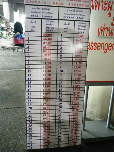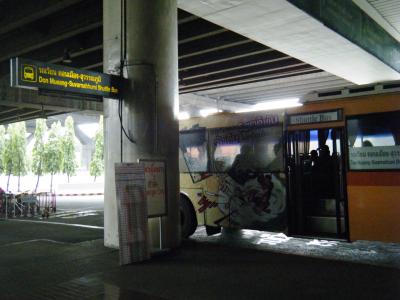 2012年10月1日より、すべてのエアアジアの離発着便がスワンナプーム空港からドンムアン空港へと移動になりました。その事があったせいか、スワンナプーム空港とドンムアン空港間をシャトルバスが運行しています。料金は無料との情報もあります。朝、晩は1時間おき、日中は40分おきに運行されているようです。スワンナプーム空港の方は確認していませんが、ドンムアン空港では、シャトルバスの乗り場は、空港を出て左へ、タクシー乗り場を過ぎてちょっと行くとあります。看板も出ていますのですぐに分かります。
