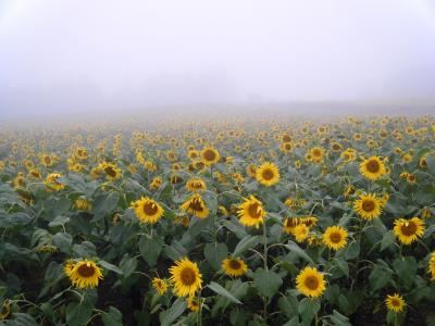 冬場スキー場として使用されている十和田湖温泉スキー場、夏場は?と思っていたら、スキー場の上の方にひまわりが植えられ、一面のひまわり畑になっていった。訪れた日はあいにくの雨模様で、ガスがかかって今ひとつだったが、それでも一面のひまわり畑は見事だった。9月上旬まで見ることができるようなので、必見の価値あり。