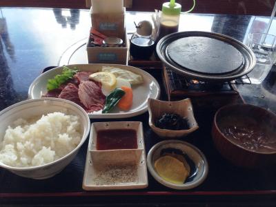 むつ市から尻屋崎へ県道6号線を走らせていくと、東通村の岩屋地区に海峡食堂善があります。店内から津軽海峡が一望でき、また席には双眼鏡も置かれているので、天気が良ければ北海道も見ることができます。この辺りでは海鮮は当たり前なのでこの東通村で飼われている黒毛和牛の東通牛の鉄板焼きを注文してみました。お値段もちょっとお高く、1500円。お肉は思っていたよりは柔らかくはありませんでした。他に東通牛バラ焼きや東通牛丼、1000円があります。