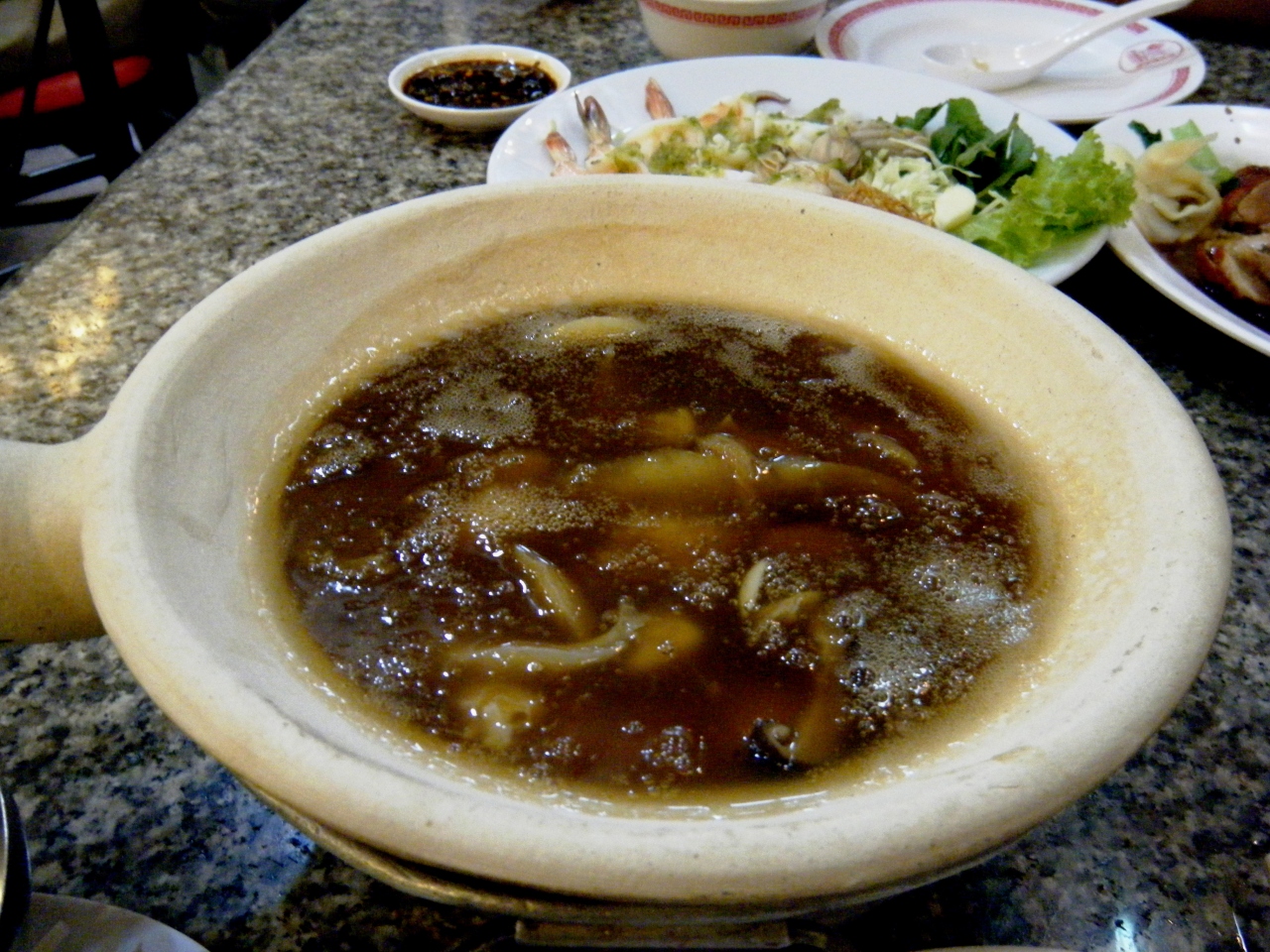 どうしてもフカヒレが食べたくて、現地駐在員お勧めというので行ってみた。フカヒレスープは、300、500、700だっけ1000だっけ? の3種類から選べ、500THBのものを注文。結構フカヒレが入っていて、大変満足。昼時行ったのですが、地元の人で大変込んでいました。地元の人も行くってことは美味しいってことですよね!