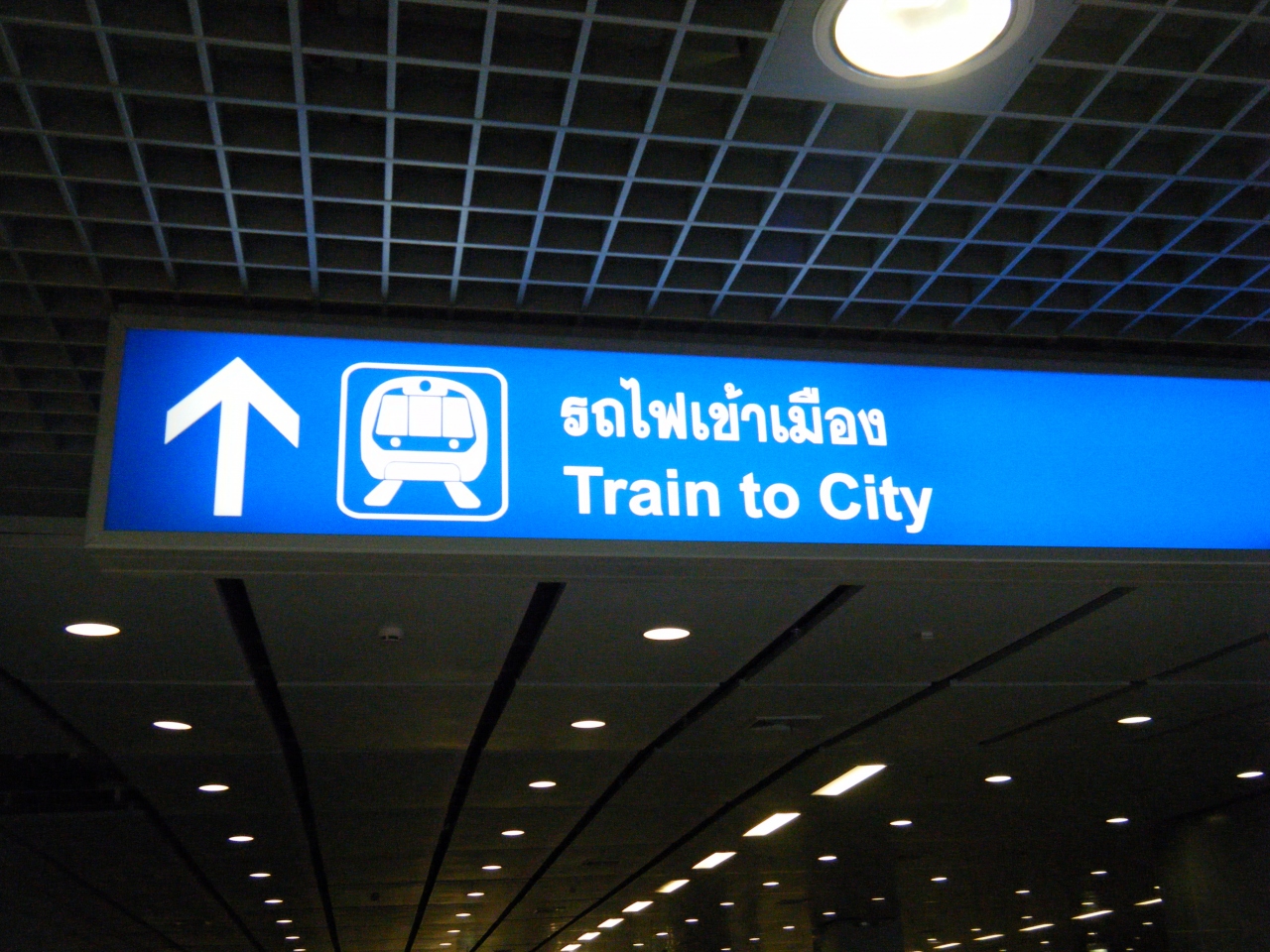 8/23に開通した「エアポート・リンク」。空港からの乗り場はB1です。「Train to City」の看板を目印に行くとあります。乗り場のところにチケット売り場があり、左側がマッカサン駅までノンストップの「Express」、右側がパヤタイ駅までの各駅停車です。料金はまだキャンペーン価格で、Express 100THB、各駅は15THB。
