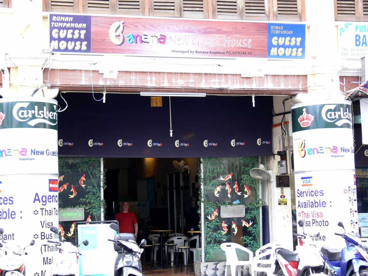 ジョージタウンで有名な「バナナ・ニュー・GH」。場所はチュリア通りの中ほど。エアコン付き、シングル、トイレ、シャワーは共同で、50RMでした。1Fのカフェのテラスのテーブルでのんびりもなかなかいいです。