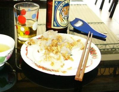 場所は旧市内から徒歩10分程度、ハイバーチュン通りを進み、シン・カフェを過ぎちょっと、右側です。値段は確か 25000VND(約200円)だったかなあ? タイミングがあれば、ホワイトローズの作っているところも見学できます。