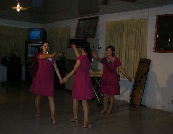 なぜ、ここがおすすめかというと、それはショータイム。夜の8時頃から団体客が入ると行われます。歌あり、踊りあり、あのテレビで見た「喜び組」までとは言いませんが、これが結構いけます。綺麗な北朝鮮美人の歌と踊り、思わず「本物だ!」と笑ってしまいます。