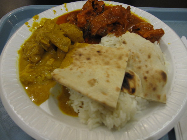 私は軽そうな揚げたひよこ豆と、サラダを少し、重そうな蒸しサーモン1切れとマカロニチーズ、うどんみたいな麺をのせて大体9ドルくらいでした。