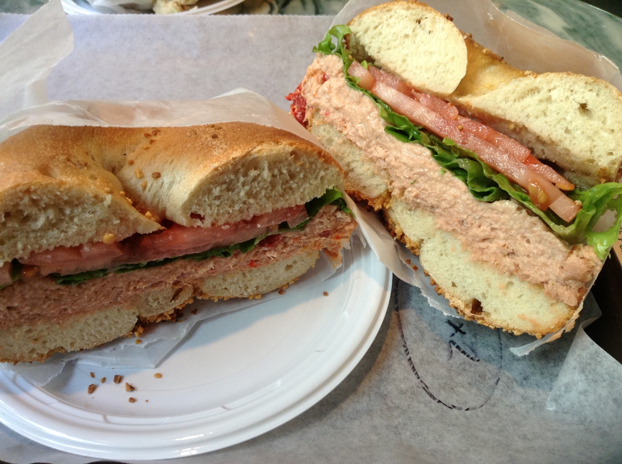 私はツナサンドイッチを食べましたが、ツナのフィリングが多すぎて、残しちゃいました。