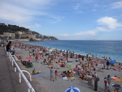 海には入りませんでしたが、海に入って遊んでいる人は沢山いましたし、砂浜でビーチバレーをする人、読書をする人、会話する人でひしめき合っていて、非常に賑やかでリゾート地の匂いがぷんぷんしました。ニースは観光地として本当に充実していてビックリしました。海岸から少し歩けば沢山のレストランがありますし、食べ物にも飲み物にも困らないです。もう少し静かでゆっくりビーチを楽しみたい人にはあまりオススメできないですが、お祭り気分で楽しむには最適だと思います。