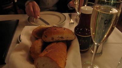 シャンパン・トマトのサラダ・でかいジャガバタ・ステーキ2人分・コーヒー2杯で100ドルくらい軽くいきます(苦笑)
