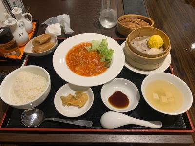 AXCビルの一階にある中華レストランです。一人で夕食を摂りました。エビチリ、揚げ春巻き、天心のセットをいただきます。久々の本格中華に心が高揚します。メニューが豊富、店内の雰囲気もオシャレで、会食にも良さそうです。