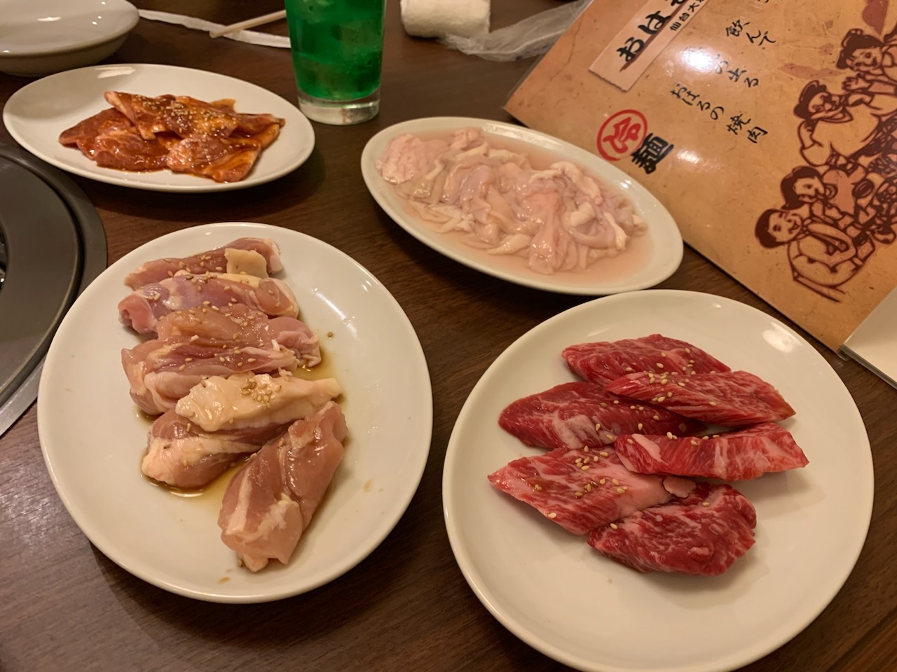 仙台には数軒ある焼肉屋です。子供達と一緒に焼肉を食べに行きました。食べ放題はないようです。カルビ、タン、豚ロース、ホルモンなどのファミリー盛りを頼みましたが、子供達はもっと食べたそうだったので、カルビのおかわりを。カルビはとても柔らかくて美味しいですが、お値段もそれなり。スマホから料理を注文できるのですが、WI-FIの不調でうまくいかず、結局店員さんを呼んで注文しました。