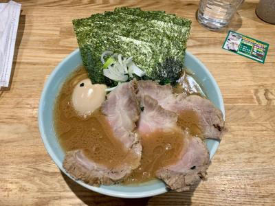 桑野の大通り沿いにある横浜家系ラーメンの店です。いわゆる全部入りのお得ラーメンをお願いします。大きなチャーシュー3枚に、海苔と味玉。こってりしょっぱいスープは確かに家系ラーメンのもの。いかにも身体に悪そうな感じがたまりません。ほうれん草が入ってないのは横浜家系としては珍しいですね。