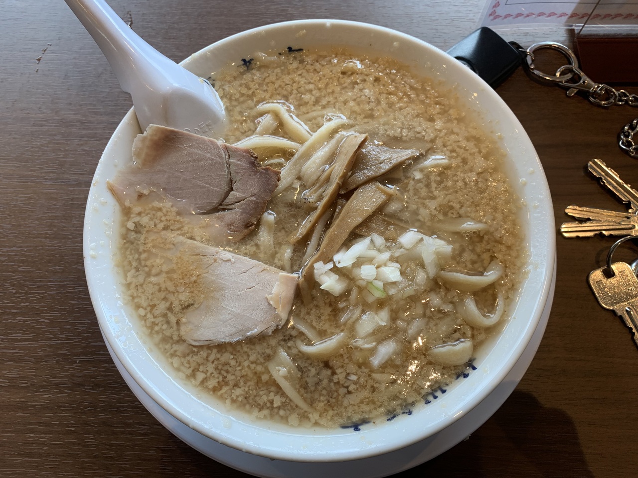 小名浜にある餃子居酒屋です。外観が派手で目立ちます。出張中のランチに一人で入りました。