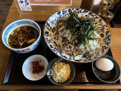 街道から少し外れた場所にある蕎麦屋です。ざるそばをお願いしました。ここは生卵もしくは温泉卵がひとつサービスでついてきます。これに揚げ玉も加え、なかなか豪華な雰囲気になります。辛味を加え過ぎて、ややしんどい味になってしまいましたが、美味しい蕎麦がいただけます。中華そばも置いています。