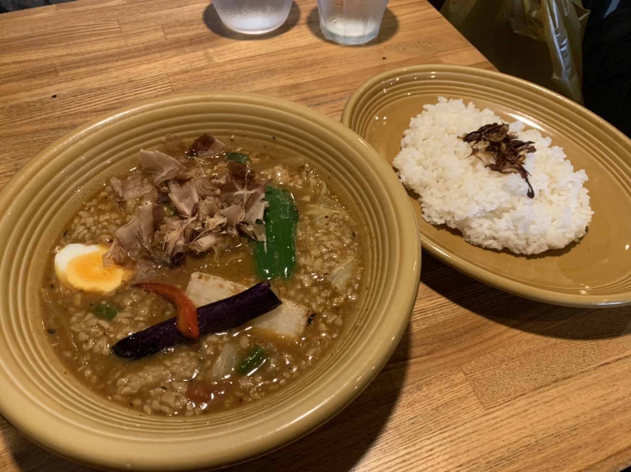 さっぽろスマイルクーポンが利用できるので行ってみました。小さなスープカレーの店です。和風キーマ納豆スープカレーをいただきました。ひき肉と納豆の組み合せが意外とカレースープにぴったり。大きな野菜がゴロゴロで、美味しかったです。