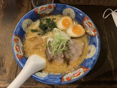 札幌ドームで野球を見た後に一人で夕食です。札幌ラーメンの有名店かと思います。背脂とんしおラーメン(800円)をいただきました。旨味たっぷりのスープがたまらなく美味い! 太麺とのコンビも完璧です。醤油味、味噌味、にぼとん(煮干し豚骨?)などいろんな味があり、また行ってみたくなる店です。