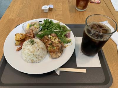宮城県図書館に設置されたカフェです。こちらで日替わりランチプレート(1,100円)をお昼にいただきました。チキン、ベーコンポテト、サラダなどが一皿に盛られたお得なプレートでした。