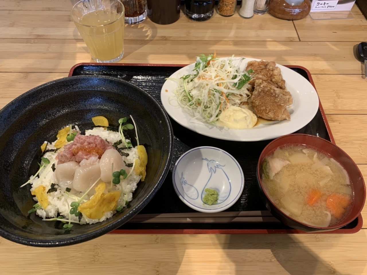 前から気になっていた店に子供と行ってきました。カフェでもあり、定食屋でもありという感じ。僕は鶏のピリ辛ソース掛け定食、子供がチキン南蛮定食をいただきました。鶏のピリ辛ソースは100円安いので選んだのですが、それは平日ランチだけの話と知り、少しがっかり。それならチキン南蛮がよかった。