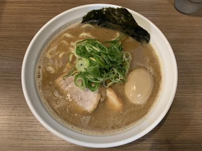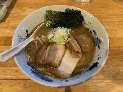 東根の中心部にあるラーメン屋です。色々な味のラーメンが選べるようで、こってり味の味玉ラーメンを食券機で買います。さほど待たずに現れたラーメンは、不透明なスープに泳ぐ中太麺。煮干しの風味がすごいです。これは美味しいラーメンですね。たまにはこってりラーメンもいいものです。