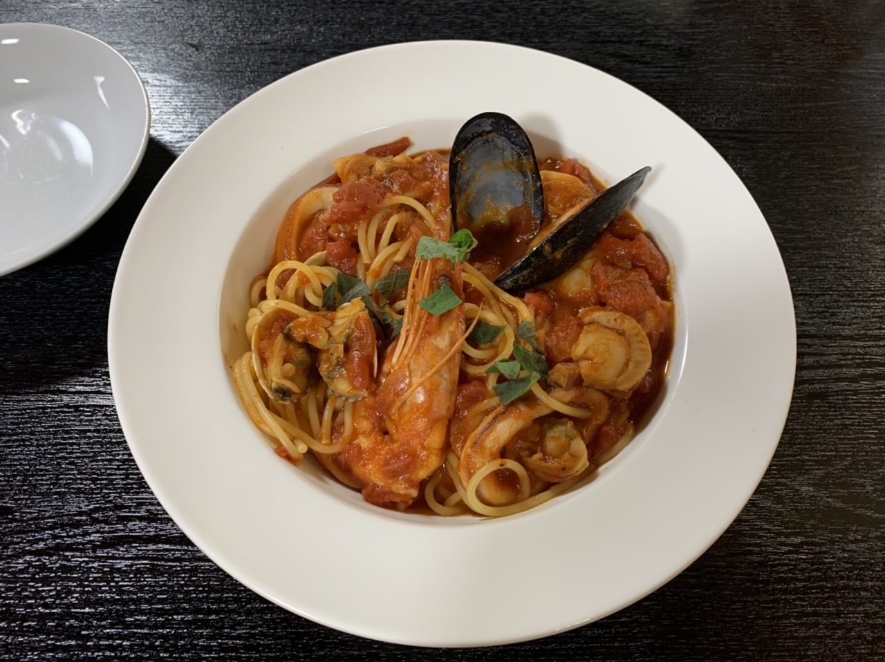 エビや貝のたくさん入ったトマトソースのパスタは旨味たっぷり。車だったので飲めませんが、ワインが欲しくなりますね。- 旅行時期
