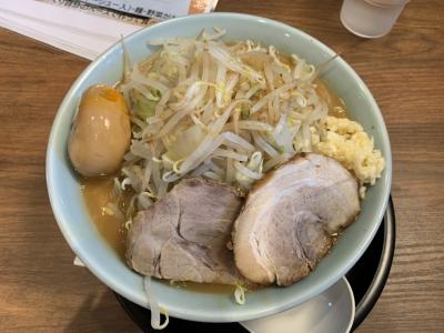 美田園駅近くに見つけたラーメン屋です。ラーメンをいただきました。麺は200gと300gは同料金、400gは100円増しです。300gを選び、野菜マシにしてもらいました。そうです、ここも典型的な二郎インスパイア系です。モチモチの太麺が塩辛いスープに絡みます。